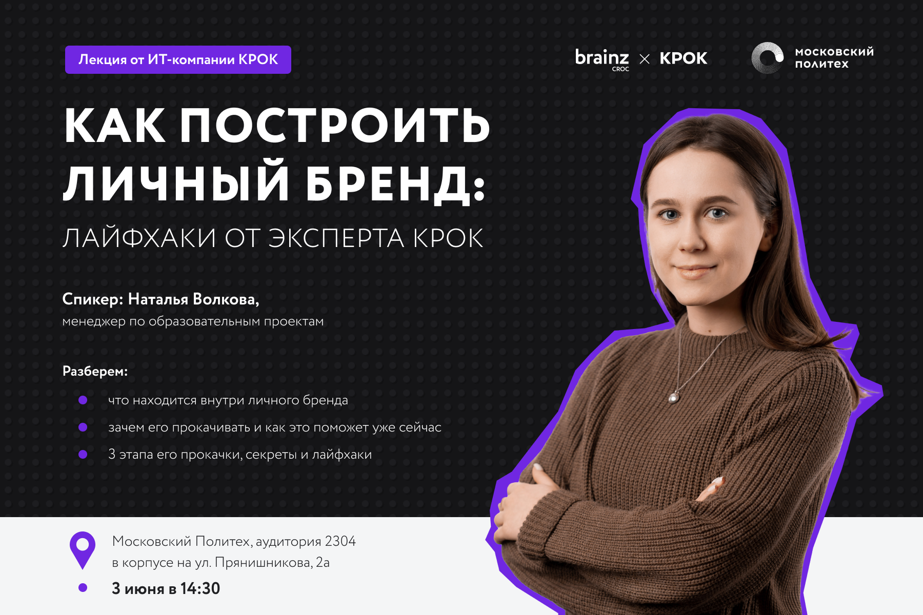 Для студентов Московского Политеха пройдет мастер-класс от Натальи Волковой, менеджера по образовательным проектам.