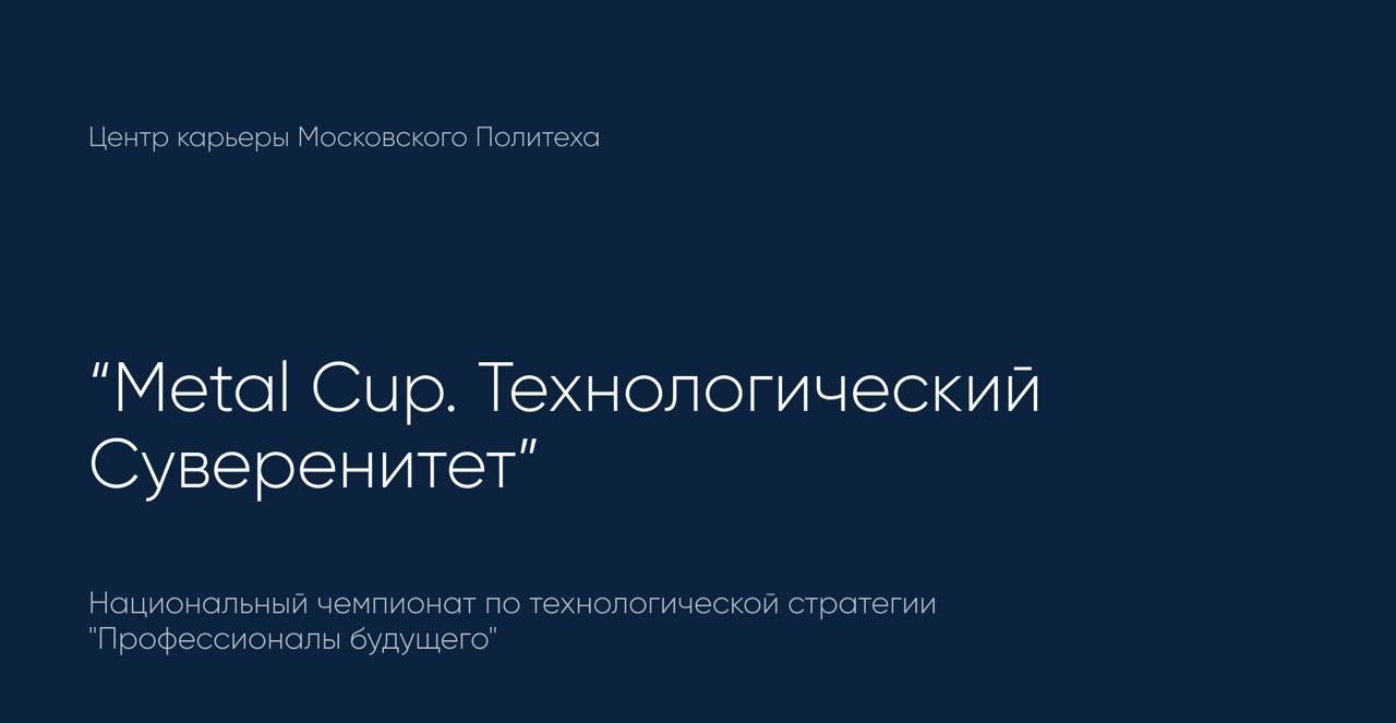 "Mеtal Cup. Технологический суверенитет" - направление чемпионата в области металлургии и технологии материалов. Партнерами направления являются крупнейшие горно-металлургические компании России: Северсталь, ТМК, НЛМК, Полиметалл, ЕВРАЗ, ВСПМО-АВИСМА, Норикель, РУСАЛ, Руслом.КОМ, Мечел и др.