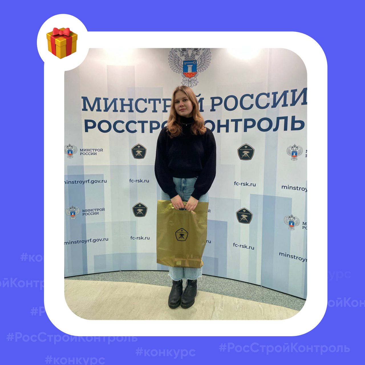 Поздравляем со 2 местом в конкурсе от РосСтройКонтроля нашу студентку, Старцеву Александру, которая уже забрала свой приз 🥳