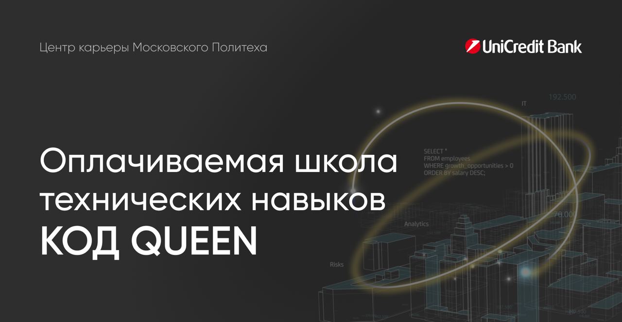 Наши друзья из ЮниКредит Банка запускают оплачиваемую школу технических навыков КОД QUEEN