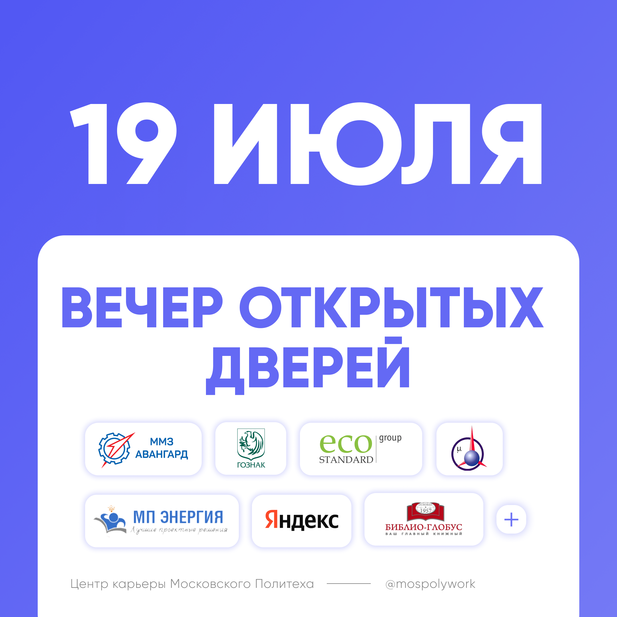 Уже завтра состоится День открытых дверей, во время которого не только абитуриенты, но и студенты Московского Политеха смогут пообщаться с такими компаниями как: Яндекс, Роскосмос, WOWPROFI, РУБИН и многими другими.