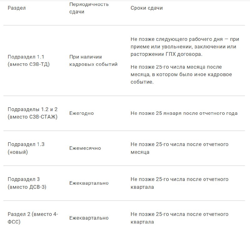 - персонифицированные сведения — до 25-го числа после отчетного месяца.