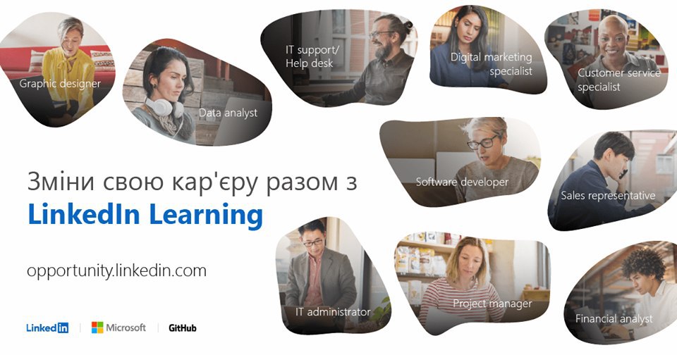 - LinkedIn Learning, платформа для онлайн-навчання на якій відкрито безкоштовний доступ до ряду курсів, які допоможуть опанувати нові навички.
