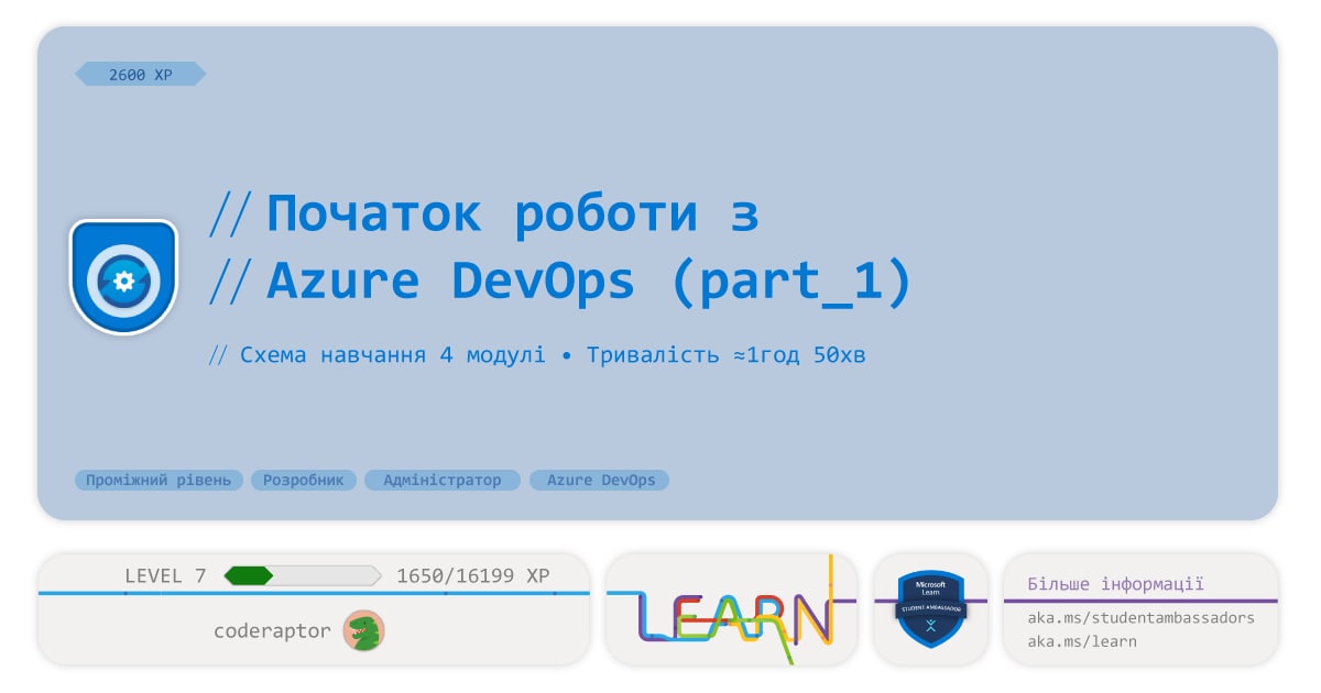 Схема навчання: https://docs.microsoft.com/en-us/learn/paths/evolve-your-devops-practices
