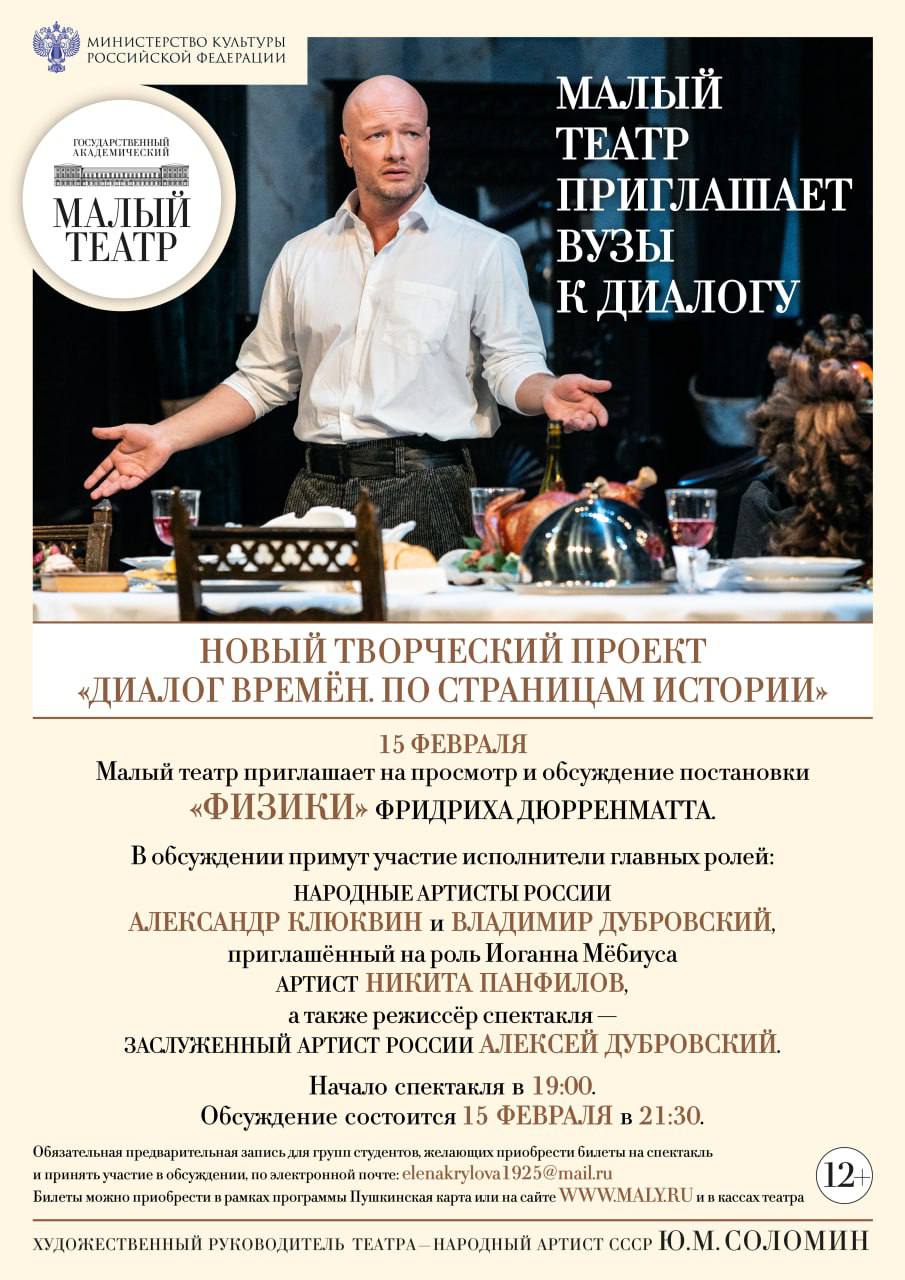 🎭 15 февраля — постановка «Физики» в Государственном Академическом Малом театре