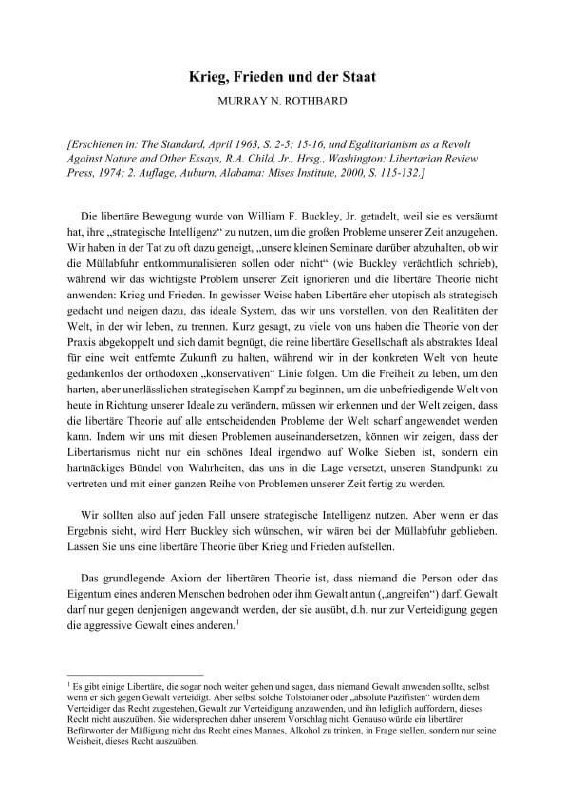 «Krieg, Frieden und der Staat» – was für ein genialer Aufsatz von Murray Rothbard! Geschrieben im Jahr 1963, aber null an Aktualität verloren. Pflichtlektüre für jeden freiheitsliebenden Menschen, der sich eine Welt der friedlichen Koexistenz wünscht. 🕊️