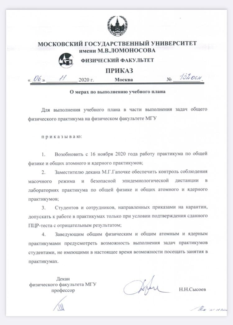 ⚡️ На физическом факультете МГУ вернут очные практикумы по общей физике и общие атомные и ядерные практикумы, следует из документа, оказавшегося в распоряжении "Первого университетского". Как уточнил источник канала, практикумы на факультете были отменены с 17 октября.