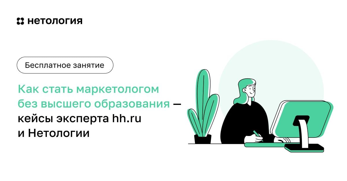 На бесплатном занятии Нетологии и hh.ru «Как стать маркетологом без высшего образования» вы узнаете, как за несколько месяцев можно стартовать в профессии благодаря практическим курсам. Также вы сможете разобрать карьерные кейсы выпускников Нетологии и статистику hh.ru по трудоустройству специалистов с высшим образованием и без него.