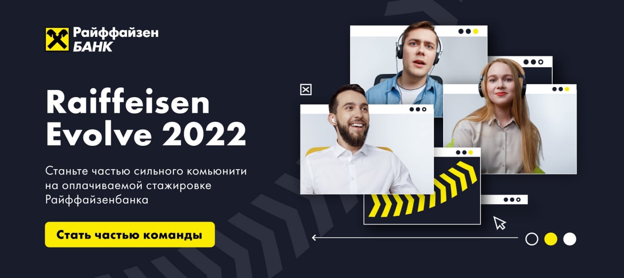 Райффайзенбанк открывает набор на оплачиваемую стажировку Raiffeisen Evolve 2022. Приглашают студентов последних курсов бакалавриата, специалитета магистрантов, а также выпускников 2020–2021 годов из Москвы.