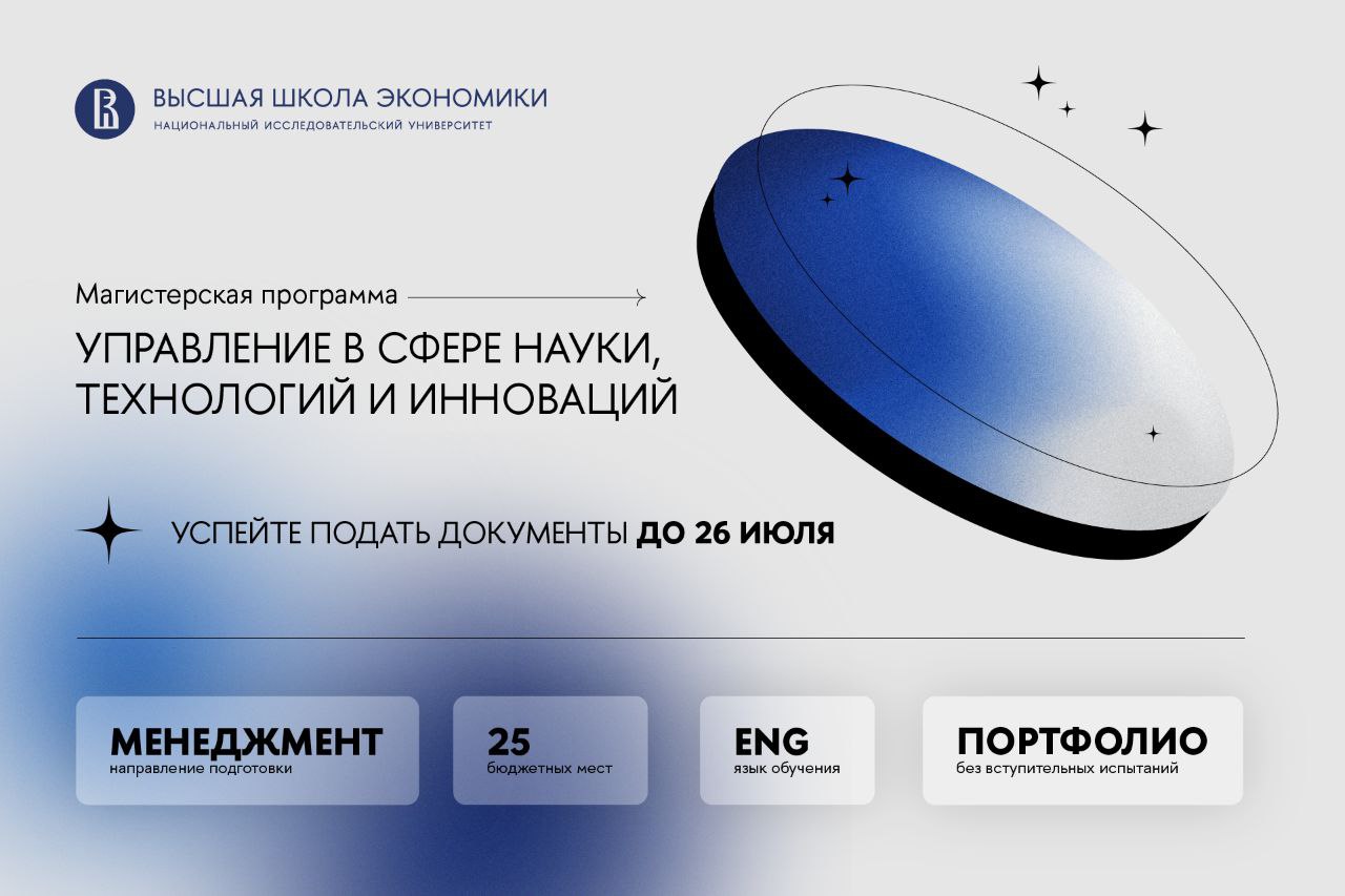 Англоязычная магистерская программа «Управление в сфере науки, технологий и инноваций», аккредитованная Европейским фондом развития менеджмента (EFMD), продолжает набор на 25 бюджетных мест.