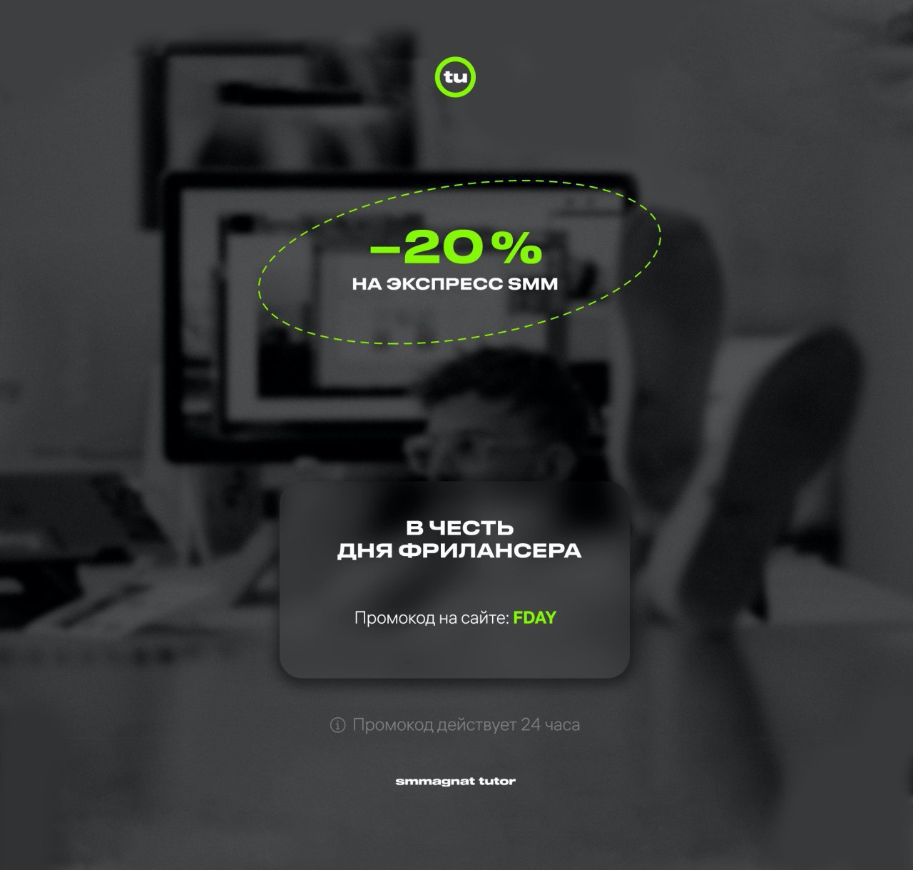 В поддержку всем фрилансерам, и всем кто хочет им стать, мы решили сделать то, что практически никогда не делаем — даём скидку в 20% на самый популярный курс от smmagnat tutor ©
