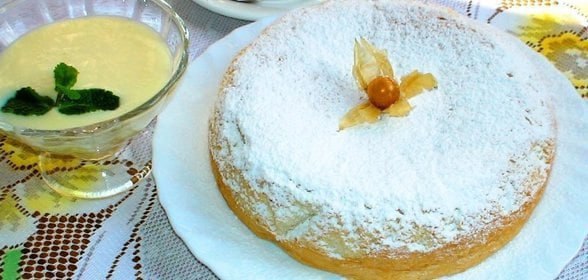 7. Готовый пирог остудите в форме. После чего переверните его на тарелочку или блюдо. Посыпьте сахарной пудрой. Приятного аппетита!