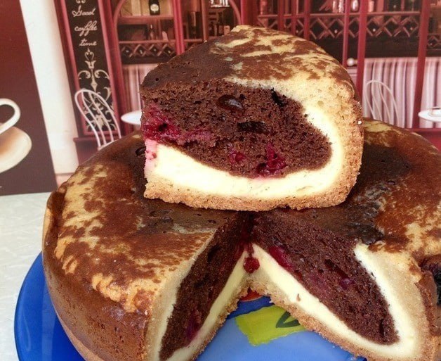 ШОКОЛАДНО-ТВОРОЖНЫЙ ПИРОГ С ВИШНЕЙ