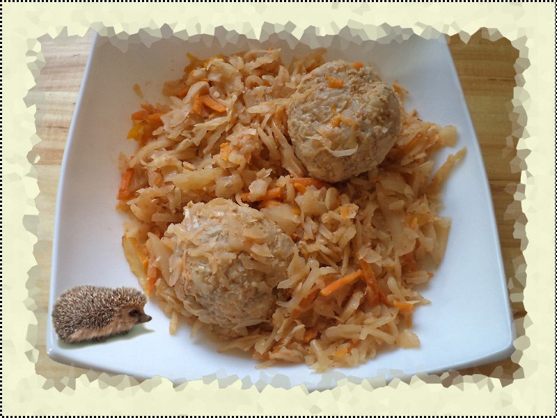 Рис залить кипятком. Капусту нашинковать, добавить 1 чайную ложку соли и слегка перетереть руками. Добавить специи по желанию, перемешать. Морковь натереть на крупной тёрке, лук 1 головку нарезать полукольцами, перец соломкой и всё это добавить к капусте, перемешать. В отдельной посуде смешать фарш с рисом, слив предварительно воду. Добавить мелко порезанный лук, чеснок, измельчённый через пресс, яйцо. Посолить по вкусу. Всё хорошо перемешать. Чашу мультиварки смазать маслом. На дно выложить примерно третью часть капусты с овощами. Из фарша сформировать шарики. Выложить их в чашу на капусту. Сверху слой капусты, затем ещё ряд шариков и верхний слой опять из капусты. В обычный стакан положить 2 ст. ложки сметаны, 3 столовых ложки кетчупа и до верха добавить воду. Перемешать и эту смесь влить в кастрюлю мультиварки. Можно добавить черный перец горошком и лавровый лист. Готовить в режиме «Тушение» 1час 30 минут. Вместо сметаны можно использовать майонез, вместо кетчупа - томатную пасту, это уже по желанию. Получается сразу второе блюдо и гарнир.