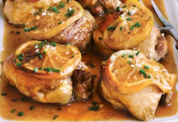 3. Порезать еще один апельсин и выложить сверху курицы и оставить в маринаде на пару часов.