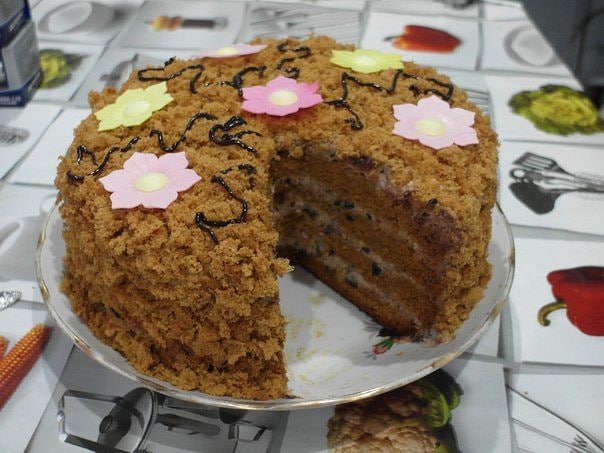 Медовый торт с черносливом и орехами