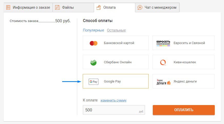 У нас хорошая новость.Подключили новый метод оплаты — Google Pay.