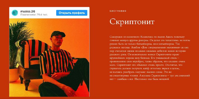 На сайте Esquire вышел большой материал "Кто останется в музыкальной истории 2010-х" — про главных артистов десятилетки. Для любопытных прикладываю ссылку, но читать его не надо, надо посмотреть скрин ниже. Суперкомбо работы журналиста и фоторедактора: первый Скриптонита никогда не слушал, а второй — не видел.