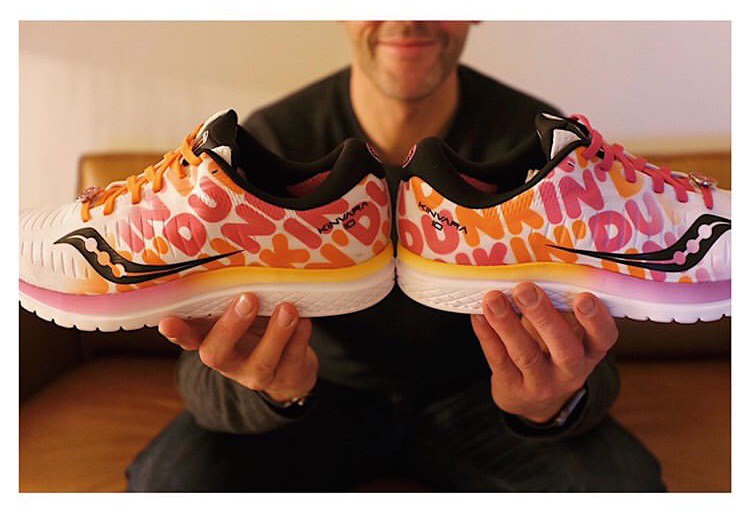 Пока беговые соцсети разбираются с противостоянием Головин/Глухов, оценим совместный проект Saucony 👟 и DunkinDonuts 🍩 к Бостонскому марафону. Предварительный заказ через головной сайт, но всякие американские блогерки (с) уже получили эту модель на тест. В продаже с 3 апреля. 110$.
