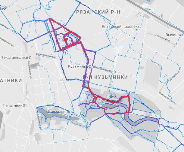 В моём случае это район проживания, дорога в парк Кузьминки и трасса нашего parkrun. Плюс заметная область в районе Пушкинской площади, где проходят городские тренировки @wakeandrun по вторникам.