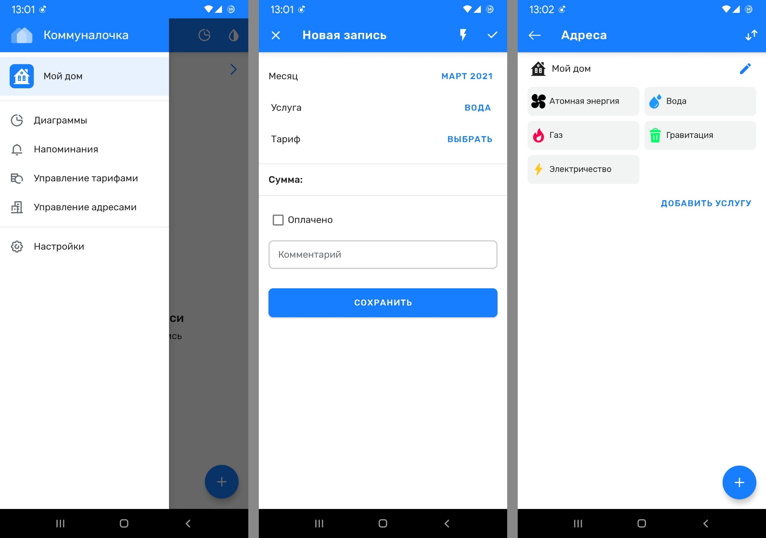 Добротное приложение для ведения учёта оплаты коммунальных платежей. Позволяет вести нескольких домов и тарифных сеток. Формирует для вас красивые и информативные отчёты. Быстрое и удобное 👍