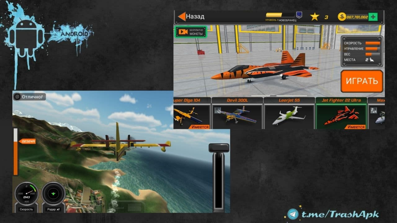 Flight Pilot Simulator 3D – отличный симулятор полётов на различных классах самолётах.