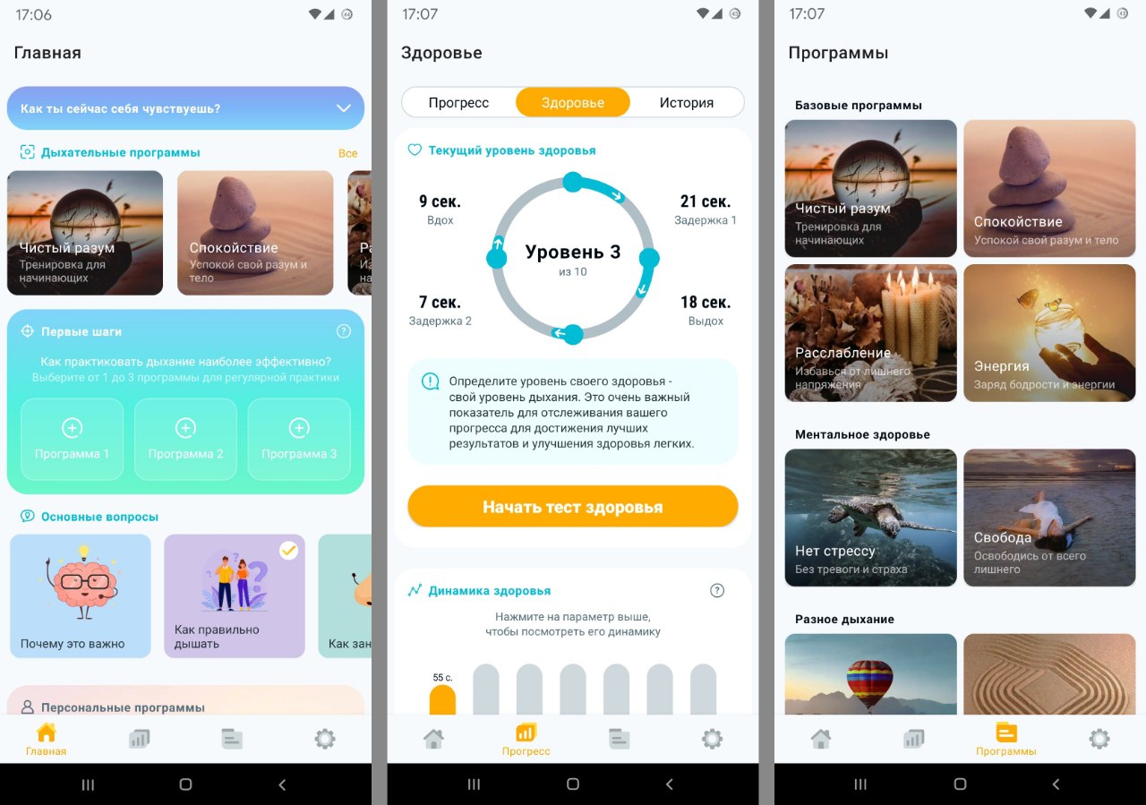 Прекрасное приложение, предоставляющее доступ к обширному каталогу дыхательных упражнений, которые позволят значительно улучшить состояние вашего здоровья. В наличии множество готовых программ и возможность составления собственных планов тренировок на базе множества доступных упражнений. Так же приложение предоставляет доступ к каталогу медитативной музыки. Годнота 👍