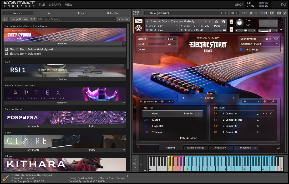 Интуитивно понятная раскладка клавиатуры позволяет играть в режиме LIVE/MIDI KEYBOARD PERFORMANCE, используя многочисленные артикуляции, шумы, специфические для гитары приемы, струнные и пальцевые техники игры.
