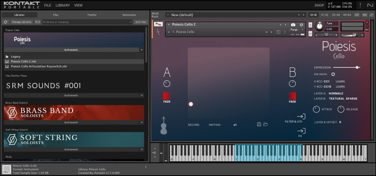 Poiesis Cello 2 теперь организован как два разных инструмента...