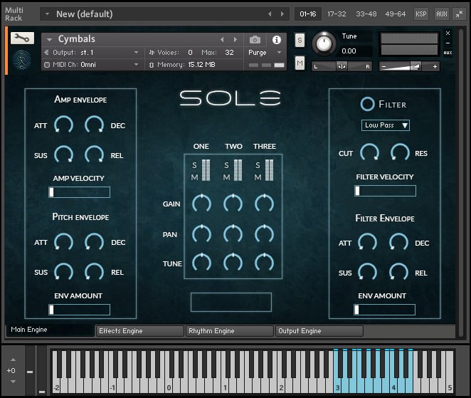Как и аппаратное обеспечение, плагин также имеет 16-частный мультирежим. Канал MIDI, скорость