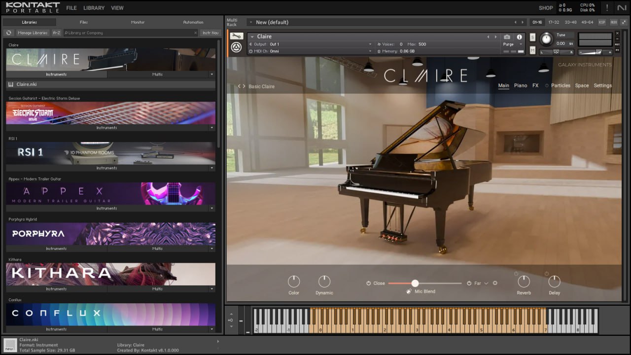 В основе инструмента лежат 3762 тщательно созданных сэмпла, записанных в знаменитой студии Kinema Audio Studio 1 площадью почти 150 м².