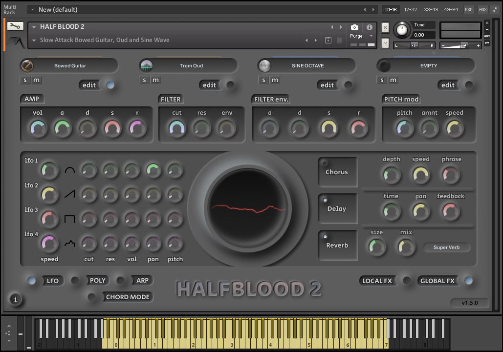 Halfblood 2 берёт оригинальную концепцию своего тёзки и преодолевает марафон до следующего уровня. У нас есть 130 уникальных источников звука, 104 из которых получены из органических инструментов со всего мира, а 26 — из синтезаторов.
