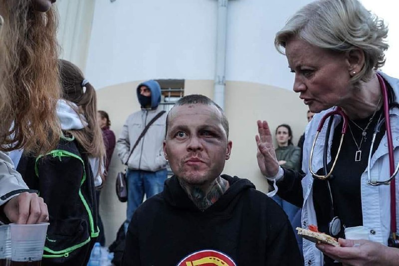 Елена оставила комментарий в соцсети, в котором выразила своё негативное отношение к силовикам. На одной из акций протеста они задержали её сына, а в каком состоянии задержанные выходили с Окрестина — врач знает не понаслышке, так как в августе работала в волонтёрском лагере у ИВС (на фото Елена справа).