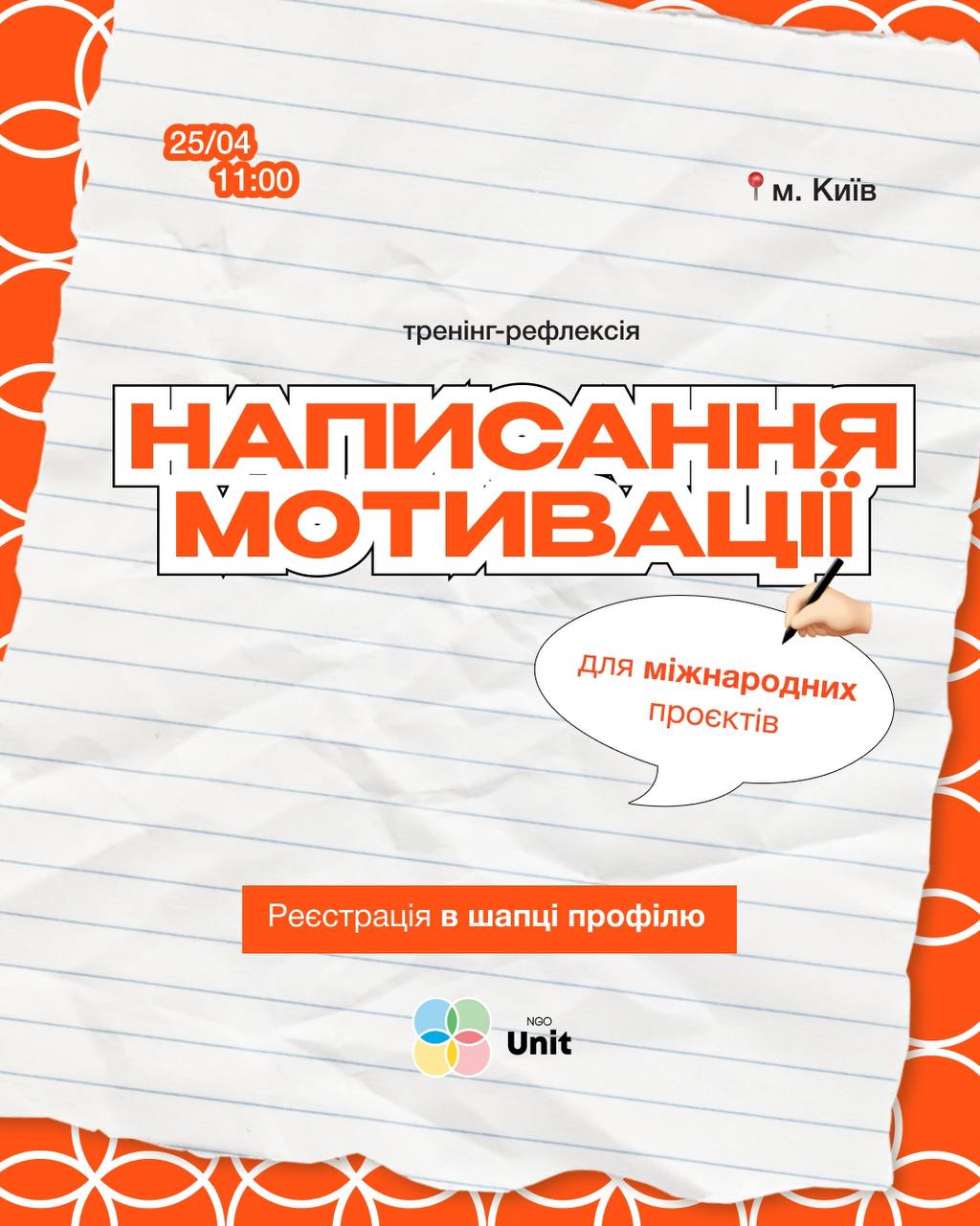 Запрошуємо тебе на довгоочікуваний тренінг-рефлексію «Написання мотивації для міжнародних проєктів» 😍