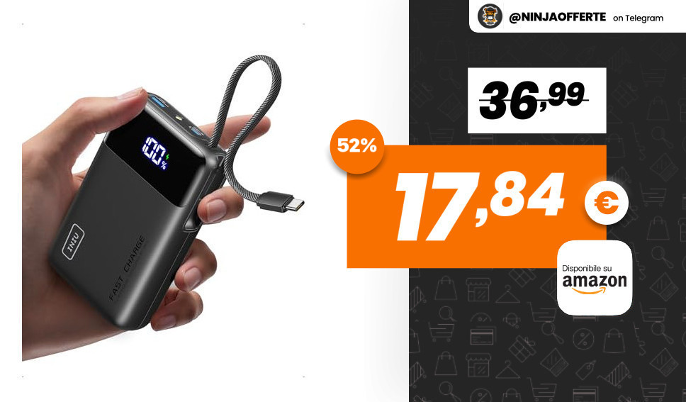 INIU Power Bank 20000mAh 45W con Cavo USB-C Integrato