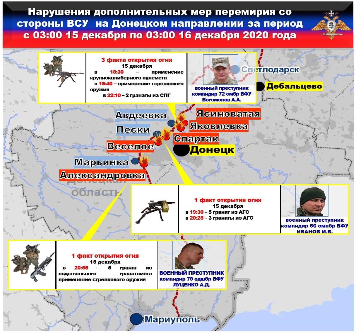 ⭐️🕙⭐️Сводка официального представителя НМ ДНР на 15 декабря 2020 года