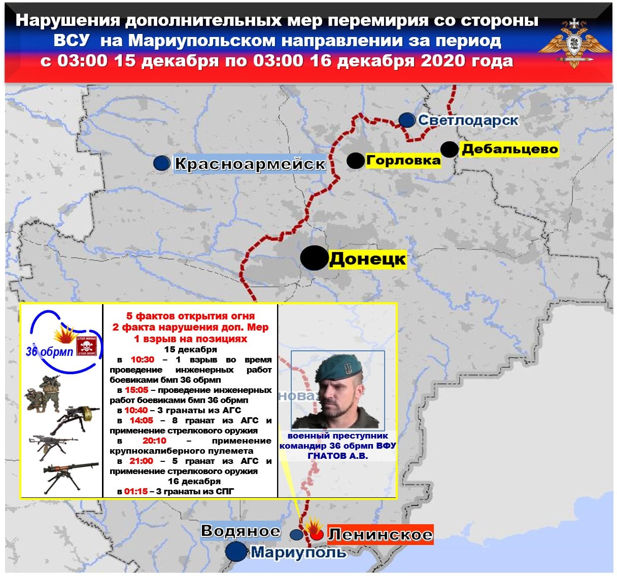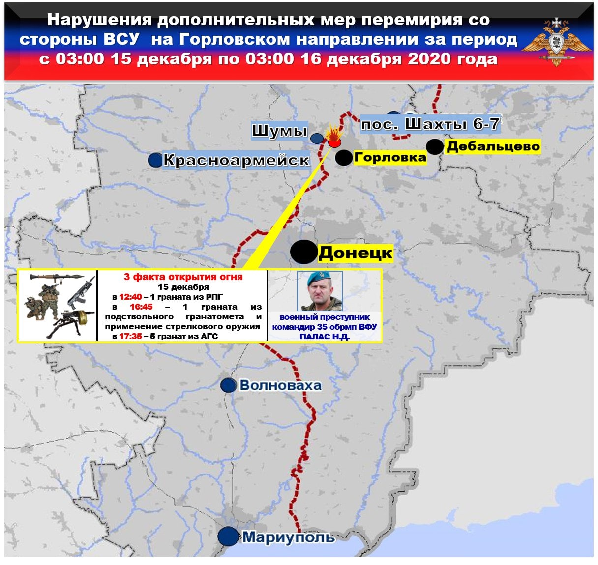 ‼️⚡️📢 Оперативная информация официального представителя НМ ДНР на 16 декабря 2020 года