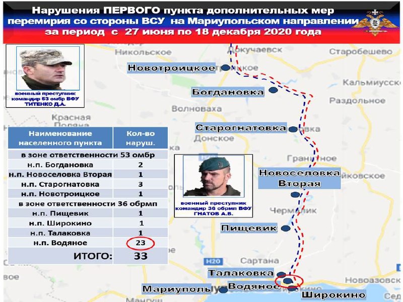 ➖На Мариупольском направлении по преступному приказу командира 36 бригады ГНАТОВА, боевики батальона морской пехоты ДВАЖДЫ открывали минометный огонь, выпустив с позиций н.п. ЛЕБЕДИНСКОЕ ДЕСЯТЬ 120-мм мин в направлении н.п. ДЗЕРЖИНСКОЕ и с позиций в районе н.п. ВОДЯНОЕ ШЕСТЬ 120-мм мин по н.п. ЛЕНИНСКОЕ.