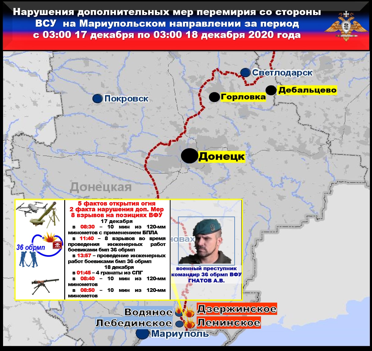 ‼️⚡️📢 Оперативная информация официального представителя НМ ДНР на 18 декабря 2020 года