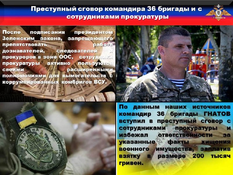 ♦️По данным наших источников командир 36 бригады ГНАТОВ вступил в преступный сговор с сотрудниками прокуратуры и избежал ответственности за указанные факты хищения военного имущества, заплатив взятку в размере 200 тысяч гривен.