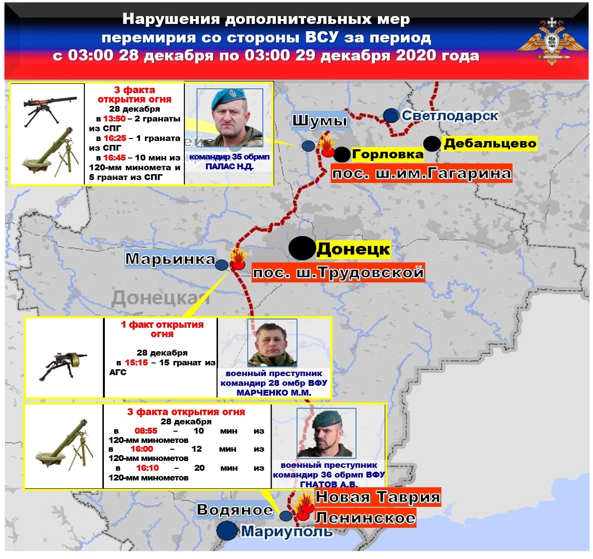 ‼️⚡️📢 Оперативная информация официального представителя НМ ДНР на 29 декабря 2020 года