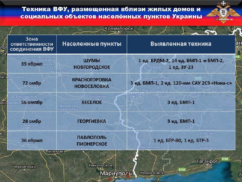 🚫Противник продолжает подвергать опасности жизнь и здоровье мирных жителей, размещая вооружение и технику в населённых пунктах. В нарушение ТРЕТЬЕГО пункта дополнительных мер, предусматривающего запрет на размещение вооружения в населенных пунктах и их окрестностях, за прошедшие сутки вскрыто ДВЕ единицы вооружения и военной техники ВФУ, в числе которых ОДНОЙ боевой машины пехоты БМП-1 и ОДНОЙ 23-мм зенитной установки ЗУ-23 из состава 56 омпбр в н.п. НЕВЕЛЬСКОЕ.
