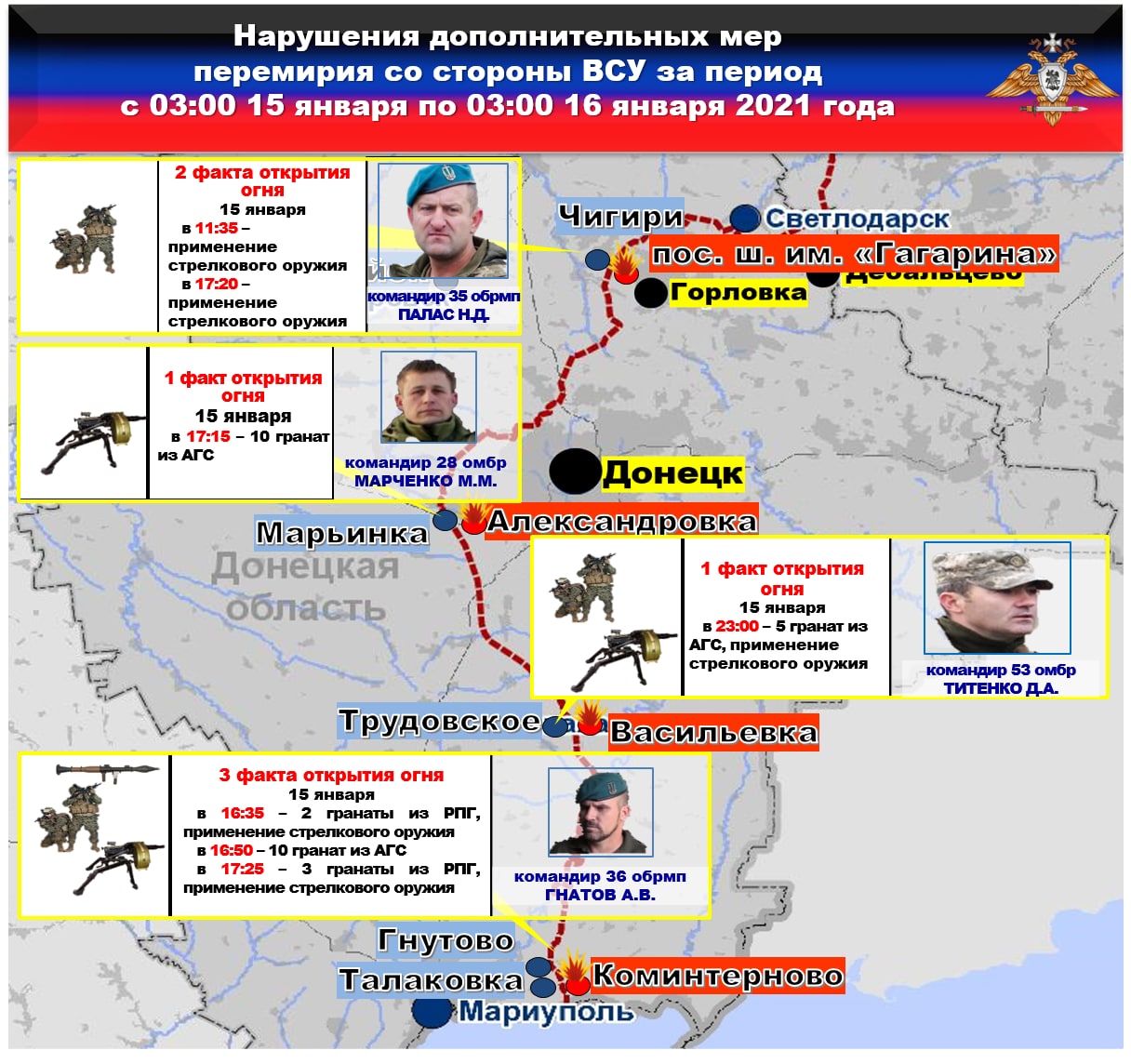 ⭐️🕙⭐️Сводка официального представителя НМ ДНР по состоянию на 21.00 15 января 2021 года