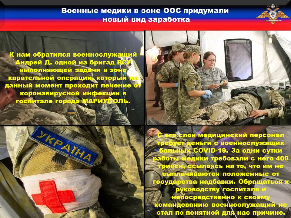 🦇Военные медики в зоне ООС придумали новый вид заработка на заболевших коронавирусной инфекцией военнослужащих.