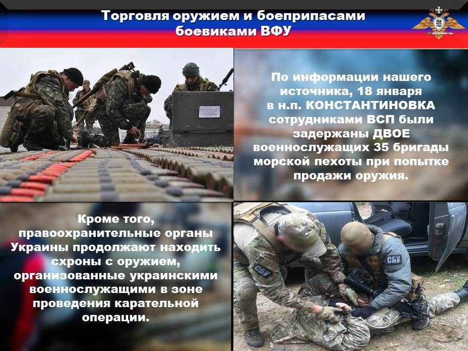 🦇По информации нашего источника, 18 января в н.п. КОНСТАНТИНОВКА сотрудниками ВСП были задержаны ДВОЕ военнослужащих 35 бригады морской пехоты при попытке продажи оружия.