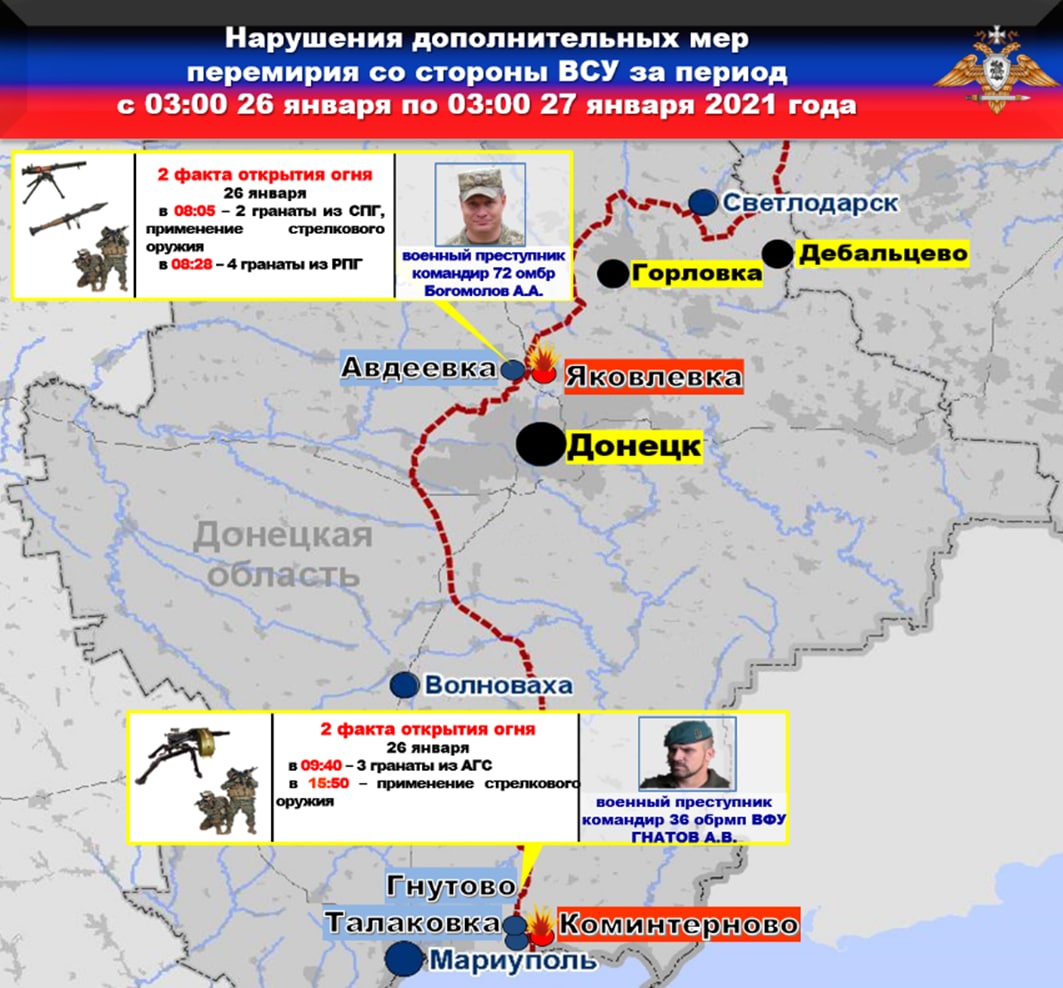 ⭐️🕙⭐️Сводка официального представителя НМ ДНР по состоянию на 21.00 26 января 2021 г.