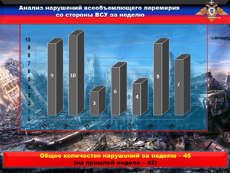 ♦️Всего, за неделю боевики СОРОК ПЯТЬ раз нарушили Комплекс дополнительных мер по усилению и контролю режима прекращения огня. В нарушение ВТОРОГО пункта дополнительных мер, противник совершил ТРИДЦАТЬ ДВЕ огневых провокаций.