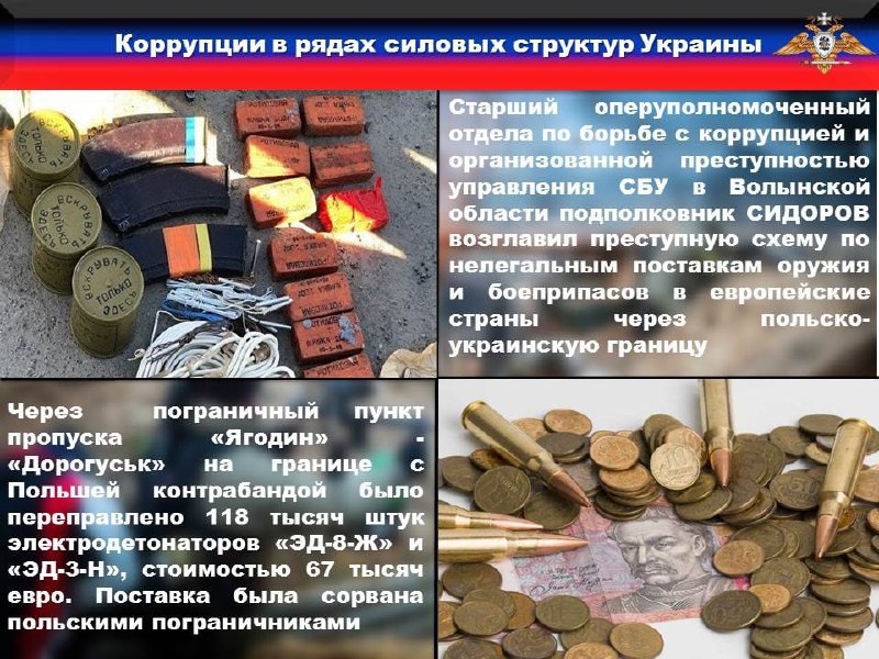🔻Последняя такая поставка под руководством СИДОРОВА произошла 22 января. Через пограничный пункт пропуска «Ягодин» - «Дорогуськ» на границе с Польшей контрабандой было переправлено 118 тысяч штук электродетонаторов «ЭД-8-Ж» и «ЭД-3-Н», стоимостью 67 тысяч евро. Поставка была сорвана польскими пограничниками.