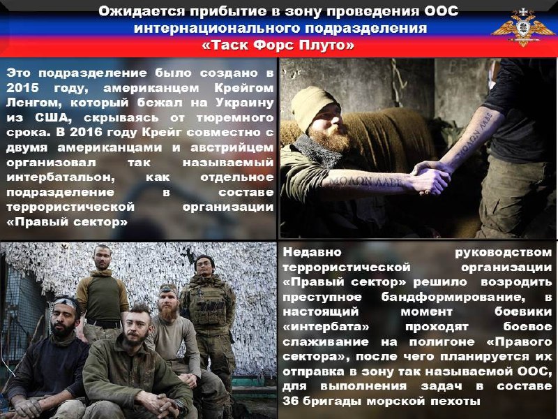 ♦️Это подразделение было создано в 2015 году, американцем Крейгом Ленгом, который бежал на Украину из США, скрываясь от тюремного срока. В 2016 году Крейг совместно с двумя американцами и австрийцем организовал так называемый интербатальон, как отдельное подразделение в составе террористической организации «Правый сектор». Известно, что под руководством Крейга для иностранных «туристов», желающих получить острые ощущения, организовывались так называемые «сафари» на Донбассе.