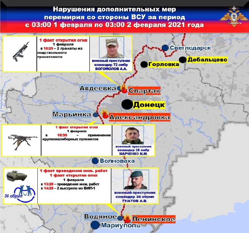 ⭐️🕙⭐️Сводка официального представителя НМ ДНР по состоянию на 21.00 1 февраля 2021 года